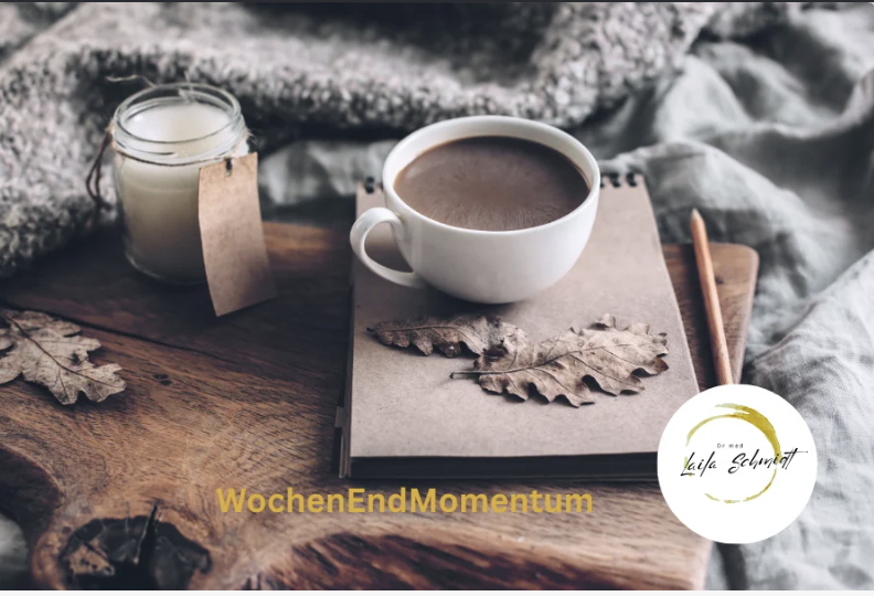 Kostenlos · jeden Samstag ein Brief · jederzeit mit einem Klick abbestellbar · der Newsletter WochenEndMomentum kommt von med@dr-laila-schmidt.de (nimm die Adresse doch gerne in dein Adressbuch auf, um zu verhindern, dass du mich im Spamfilter suchen musst)